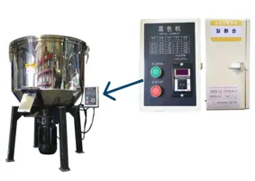 Современные модели вертикальных смесителей в подавляющем количестве случаев оснащаются автоматикой. С ее помощью отпадает необходимость в работе оператора и защищает производство от ошибок связанных с человеческим фактором. Присутствие автоматики дополнительно позволяет обезопасить производственный процесс от возможного перегрева полимеров. При критическом повышении температуры внутри смесителя автоматика отключит его работу. В данном случае также обеспечивается защита от перегрева двигателя. Наличие таймера позволяет программировать работу устройства на время до 15 минут.